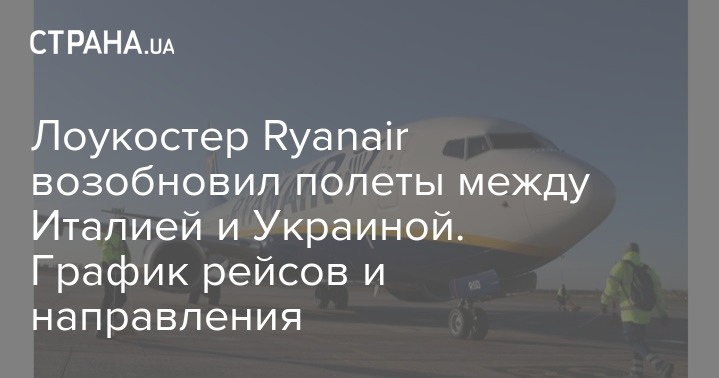 Лоукостер Ryanair возобновил полеты между Италией и Украиной. График рейсов и направления