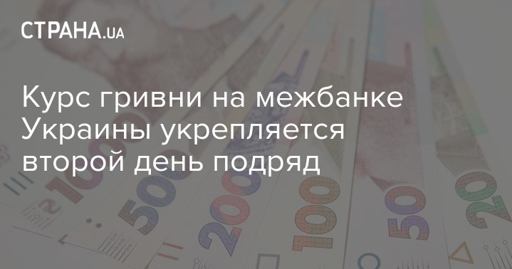 На межбанковском валютном рынке во вторник курс гривни укрепился до 26,928 грн/$1 с 26,935 грн/$1 в предыдущий рабочий день. Нацвалюта растет второй день подряд. Котировки гривни на закрытии торгов составили 26,915-26,940 грн/$1. Об этом сообщает "Интерфакс-Украина" со ссылкой на дилеров коммерческих банков.