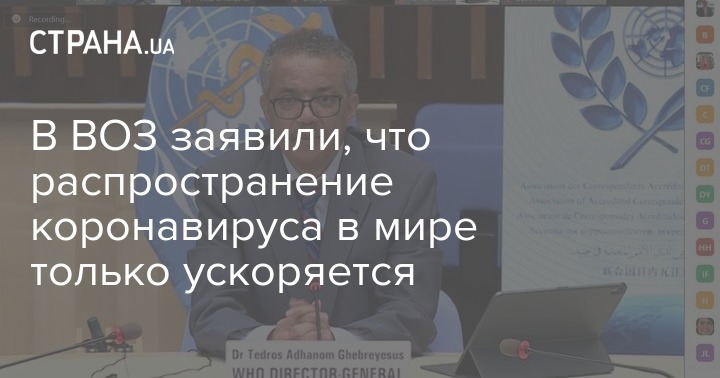 Гендиректор Всемирной организации здравоохранения Тедрос Адханом Гебрейесус констатировал, что темпы распространения коронавируса ускоряются. Также он считает, что пандемия коронавирусной инфекции еще не достигла пика.