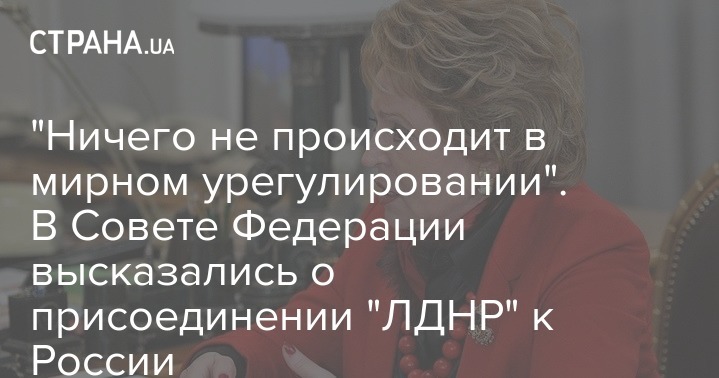 В Совете Федерации РФ заявили, что разговоры о возможности скорого вхождения "ЛДНР" в состав России возникли из-за того, что в процессе мирного урегулирования ситуации на Донбассе нет продвижения.