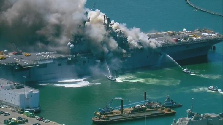 На военно-морской базе в Сан-Диего (штат Калифорния, США) уже более суток продолжается пожар на борту американского универсального десантного корабля USS Bonhomme Richard (LHD 6) ("Боном Ричард"). Его тушат пожарные суда и три вертолета, впрочем, погасить пламя пока не получается.