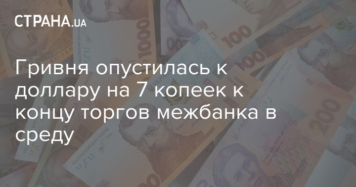 Гривня опустилась к доллару на 7 копеек к концу торгов межбанка в среду
