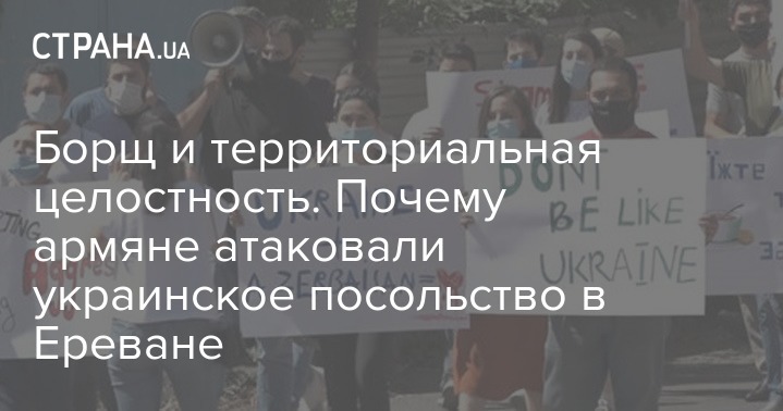 В армянской столице пикетировали и облили борщом наше посольство, обвинив в поддержке Азербайджана. Протестующие из правых партий держали плакаты на английском языке "Позор Украине", "Украина + Азербайджан", "Не будь, как Украина", "Їжте та замовкніть" на украинском и скандировали "Украина, не провоцируй", "Не поддерживайте агрессора".