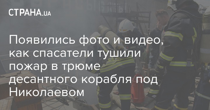 Появились фото и видео, как спасатели тушили пожар в трюме десантного корабля под Николаевом