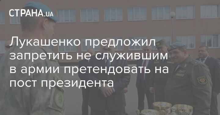 "У нас просятся во власть, а они пороху не нюхали. Нам надо вплоть до Конституции записать, чтобы на должность президента не мог претендовать человек, который не служил в армии. Какой он главнокомандующий, если не знает, что такое армия? Будет рот раскрывши ходить, ты ему лапши на уши навешаешь, скажешь СВД (снайперская винтовка Драгунова - Ред.), а он подумает, что танк. Не служил в армии - значит, тебя там (на президентской должности - Ред.) быть не должно", - заявил Лукашенко.