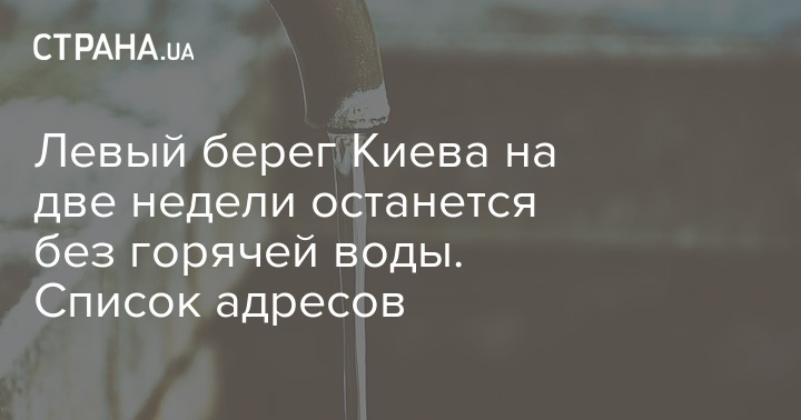 С 20 июля по 3 августа часть Левого берега Киева останется без горячей воды. Отключение коснется всех потребителей, подключенных к системам теплоснабжения "Еврореконструкция".