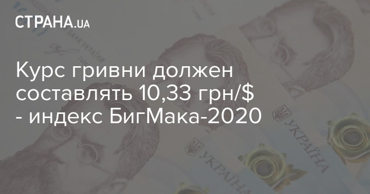 Курс гривни должен составлять 10,33 грн/$ - индекс БигМака-2020