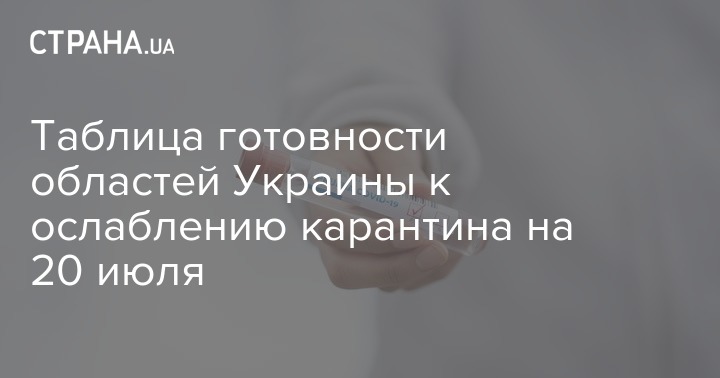 Таблица готовности областей Украины к ослаблению карантина на 20 июля