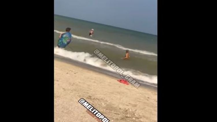 Появилось видео, как на курорте Запорожья бабушка купала внука на поводке