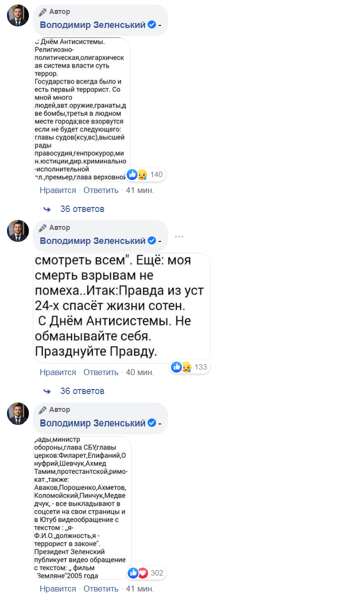 Зеленский удалил из Facebook записанное по требованию террориста видео