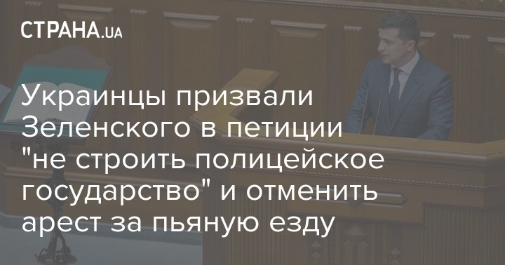 Президента Владимира Зеленского призывают остановить рассмотрение в Верховной Раде законопроекта №2695 об усилении ответственности за вождение в пьяном виде. Автор петиции называет  законопроект "диктаторским" и уверяет, что он "увеличит уровень полицейского бесчинства и коррупции".