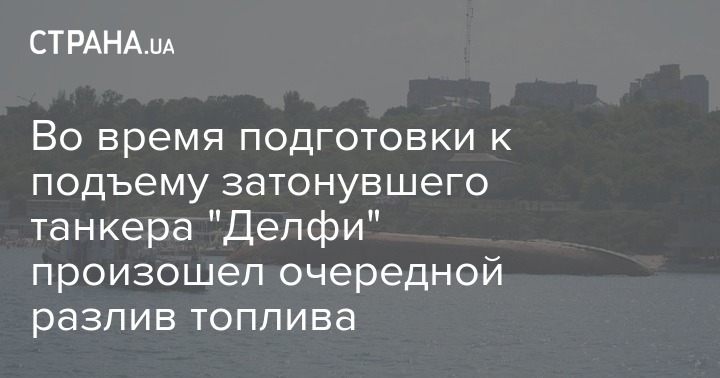 Из затонувшего танкера "Делфи", который в пятницу, 24 июля, в очередной раз пытаются поднять в Одессе, произошел разлив топлива. На поверхности моря образовалось пятно площадью порядка 7,5 тысячи квадратных метров.