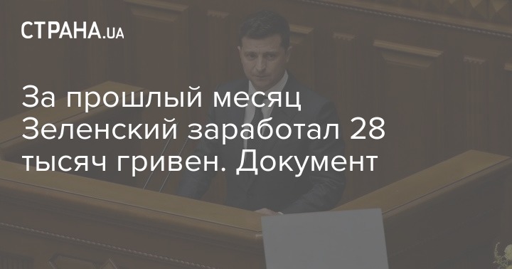 За прошлый месяц Зеленский заработал 28 тысяч гривен. Документ