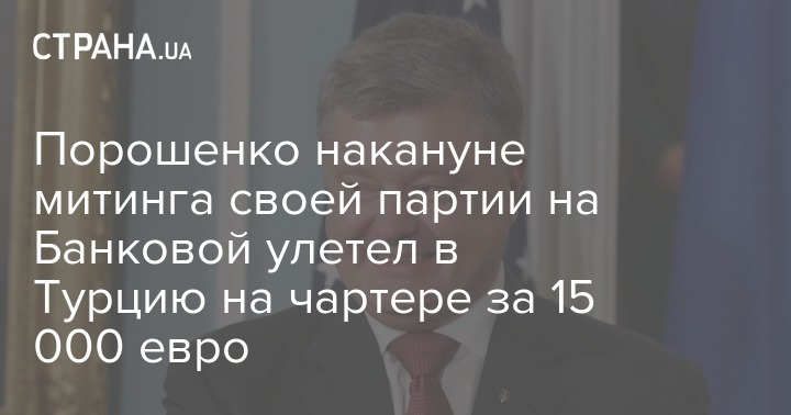 Порошенко накануне митинга своей партии на Банковой улетел в Турцию на чартере за 15 000 евро