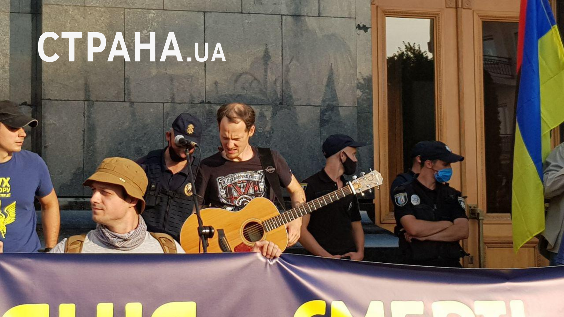 19:08 Объявили о начале акции, которую должен открыть гимн  Украины... Но тут почему-то гитарист исполнил песню, с которой Порошенко ездил во время предвыборной кампании по Украине.