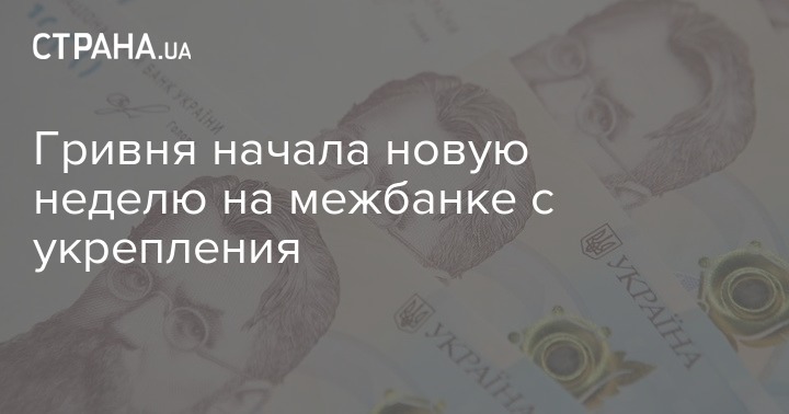 Гривня начала новую неделю на межбанке с укрепления