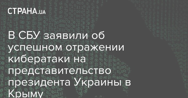 Сотрудники Службы безопасности (СБУ) нейтрализовали кибератаку на представительство президента Украины в Крыму.