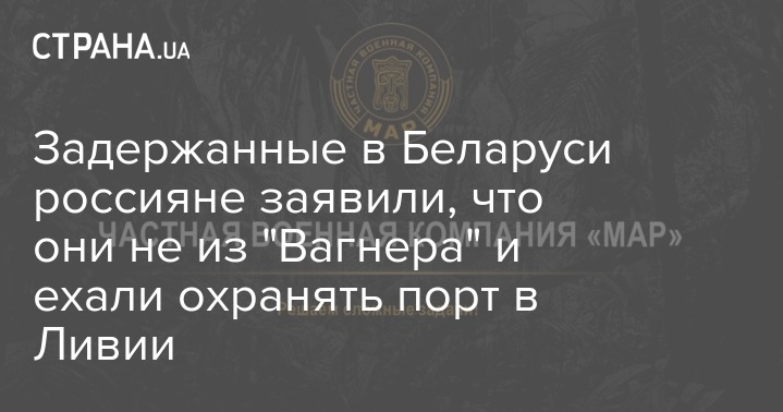 Россияне, которых белорусские силовики задержали 29 июля под Минском, на допросе заявили, что не являются сотрудниками ЧВК "Вагнер". Они работают в ЧВК "Мар" и летели через Минск в Турцию подписывать договор об охране порта в Ливии, куда затем должны отправиться на самолете.