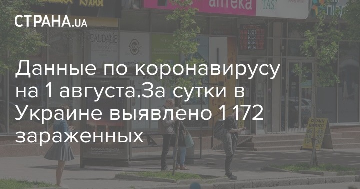 По состоянию на утро субботы, 1 августа, коронавирус за сутки подтвердили у 1172 граждан Украины. Общее число заболевших достигло  71 056 человек.