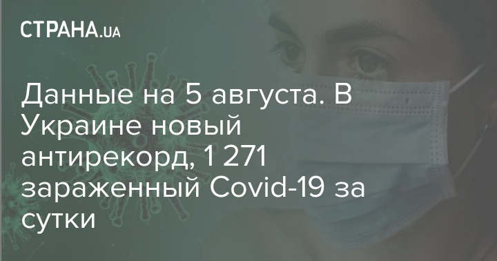 По состоянию на утро среды 5 августа, количество зараженных коронавирусом в Украине увеличилось на 1 271 человека. Это новый печальный антирекорд. Общее число заболевших украинцев достигло отметки в 75 490 человек. Вчера, 4 августа, в стране насчитывалось 74 219 зараженных.
