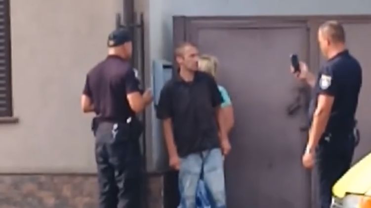 Так, курьез произошел в городе Хуст Закарпатской области. На кадрах запечатлена беседа сотрудников правоохранительных органов с мужчиной. Видно, как за его спиной стоит полуобнаженная женщина - со спущенными трусами и шортами. Во время беседы с полицией она пытается одеться, но в конце рвет на себе колготы.