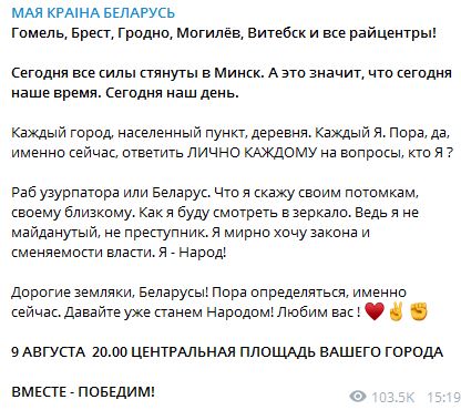 09:19  Белорусские оппозиционеры также готовят планы на случай отключения интернета. В этом случае они призывают слать новости по смс на определенные номера. А оттуда уже они будут публиковаться в подконтрольных оппозиции телеграм-каналах.