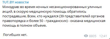 12:44 В Минздраве сообщают, что погибших нет, - передает TUT.BY