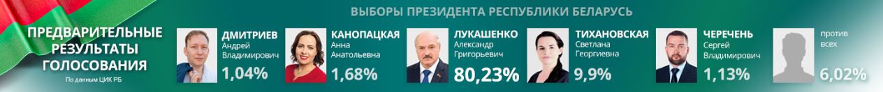 12:51 Только что ЦИК Беларуси объявил, что выборы президента состоялись. Проголосовали более 50% избирателей.