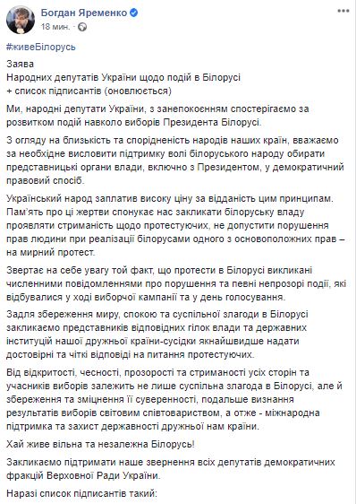 13:56 Часть украинских депутатов подписали заявление , в котором сообщают, что обеспокоены происходящим в Беларуси.