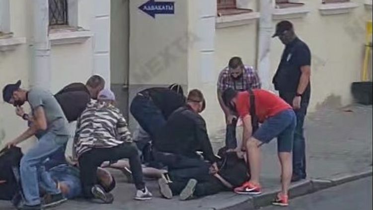 "В Минске задержаны наши корреспонденты Владимир Роменский и Василий Полонский, а также оператор Николай Антипов. Люди в штатском и в масках положили их на асфальт и (затем) увели в неизвестном направлении", - говорится в сообщении.