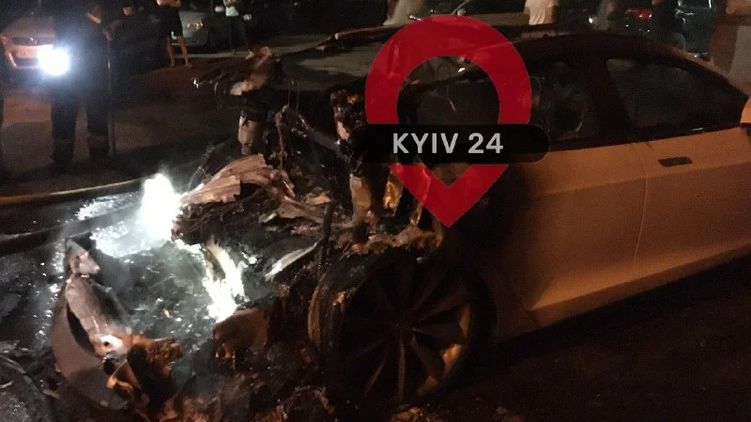 Ночью в Киеве горела Tesla Андрея Богдана. Фото