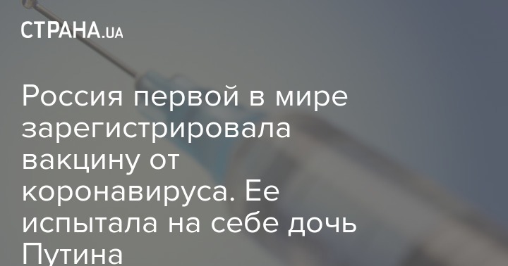 Россия первой в мире зарегистрировала вакцину от коронавируса. Ее испытала на себе дочь Путина