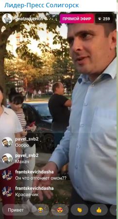 20:47 Солигорск (Минская область). "Прямо сейчас председатель Солигорского райисполкома Андрей Жайлович и прокурор Солигорского района Олег Авдей вышли к солигорчанам и отвечают на их вопросы" - пишет телеграм-канал Лидер-прес Солигорск.