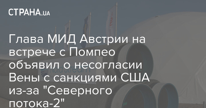Глава Министерства иностранных дел Австрии Александр Шалленберг заявил, что сожалеет из-за решения США ввести экстерриториальные санкции против строительства газопровода "Северный поток 2" в отношении участников строительства. Он надеется, что решить проблему можно будет путем переговоров. Государственый секретарь США Майк Помпео подтвердил, что в США и Австрии есть разногласия по газопроводу.