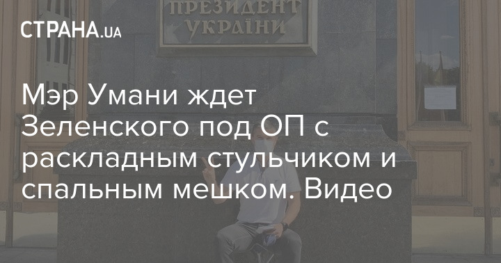 Мэр Умани ждет Зеленского под ОП с раскладным стульчиком и спальным мешком. Видео