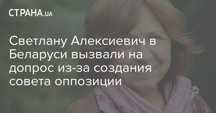 Нобелевский лауреат писательница Светлана Алексиевич, которая вошла в Координационный совет оппозиции Беларуси по передаче власти, вызвана в следственный комитет страны. Она будет свидетельствовать по уголовному делу о создании совета.