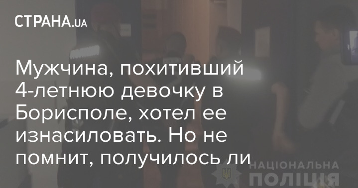 В Киевской области в городе Борисполь похитили 4-летнюю девочку. Похититель хотел изнасиловать ребенка и даже порвал на ней одежду. Но он утверждает, что не помнит, удалось ли ему совершить насилие или нет.