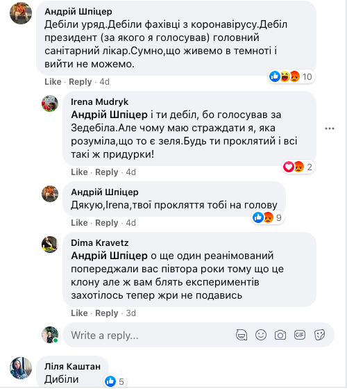 "Правительство пусть поцелует народ в .... Карантинить заставляют - а компенсации где?" - вопрошает Галя Дзюбинская.