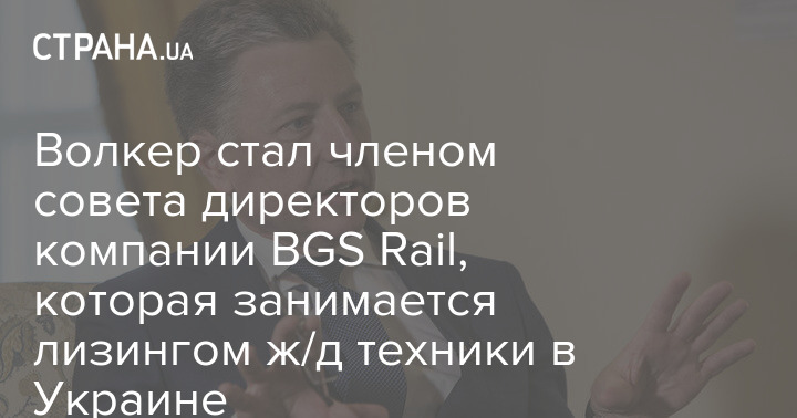Экс-спецпредставитель Госдепа США по вопросам Украины Курт Волкер с 1 сентября стал независимым членом совета директоров компании BGS Rail, украинской "дочки" литовской Baltic Ground Services.