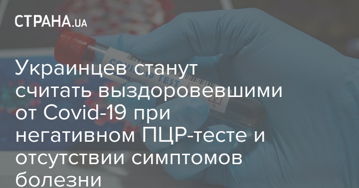 Украинцев станут считать выздоровевшими от Сovid-19 при негативном ПЦР-тесте и отсутствии симптомов болезни
