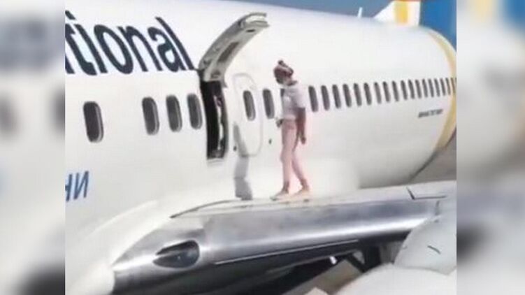МАУ внесла в черный список пассажирку, которая гуляла по крылу самолета. Скриншот: МАУ в Фейсбук