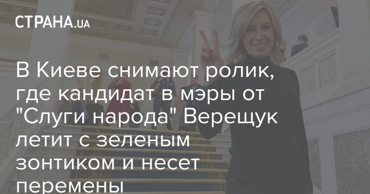В Киеве снимают ролик, где кандидат в мэры от "Слуги народа" Верещук летит с зеленым зонтиком и несет перемены
