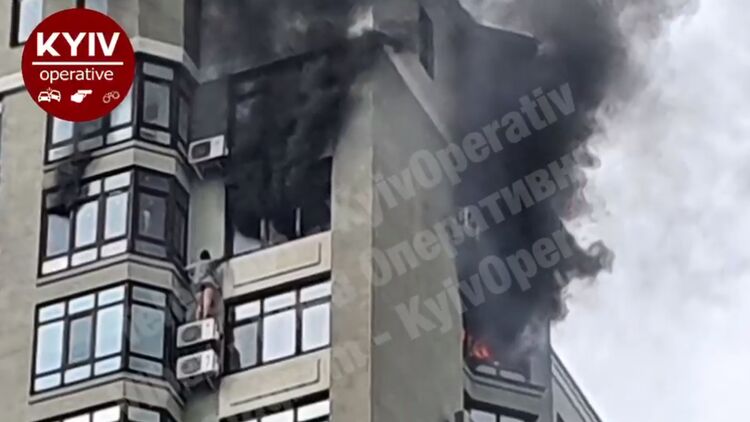 В Киеве тушат пожар на 24-м этаже. Нашли труп мужчины, хозяйка спаслась на кондиционере. Фото и видео