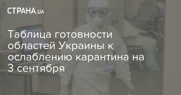 Таблица готовности областей Украины к ослаблению карантина на 3 сентября