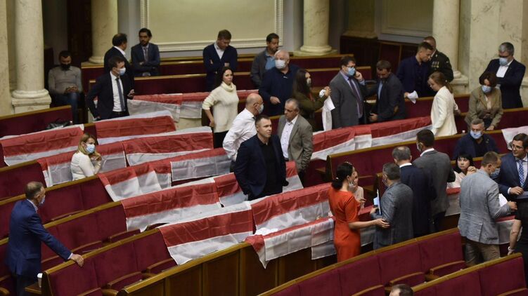 Напомним, 1 сентября нардепы от "Оппоплатформы" вывесили в Раде государственный флаг Беларуси.