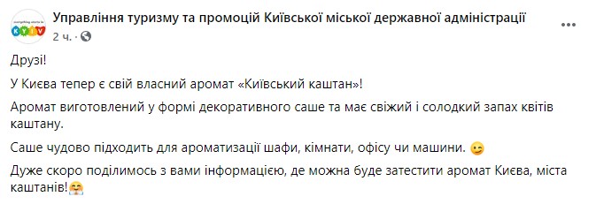 Об этом сообщило Управление туризма и промоций Киевской городской государственной администрации в Facebook.