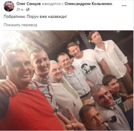 Олег Сенцов накануне нападения опубликовал фото с другими освобожденными из России в 2019 году (Балух на снимке с трубкой - Ред.)