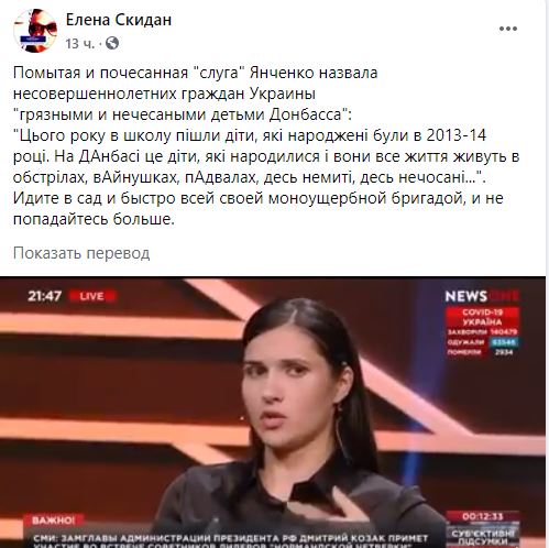 "Слуга народа" Галина Янченко в программе "Противостояние" на канале NewsOne назвала детей на Донбассе немытыми и нечесаными. А братоубийственную войну, что длится уже семь лет, именует "войнушкой". Надеюсь, девушка не выражает позицию всей партии.