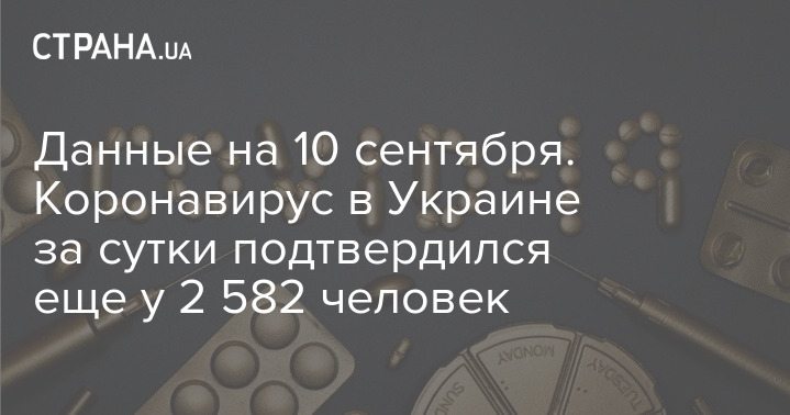 В Украине, по состоянию на утро четверга, 10 сентября, за сутки зафиксировано 2 582 новых случая заражения Covid-19.