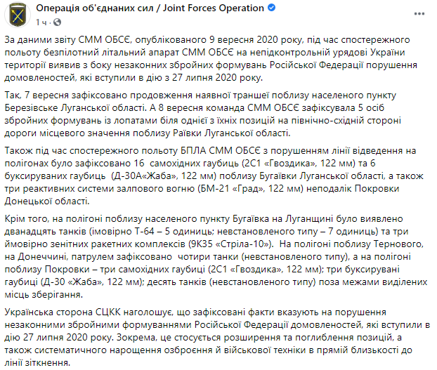 Также буквально впритык со временем инспекции вышло сообщение штаба ООС, который заявил о нарушениях перемирия со стороны сепаратистов.